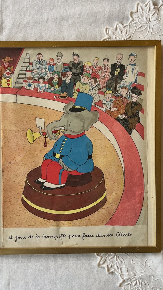 Vintage Babar illustrationer til børneværelset fra 1900-tallet i restaurerede vintage trærammer