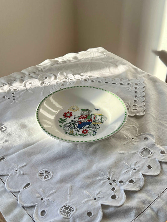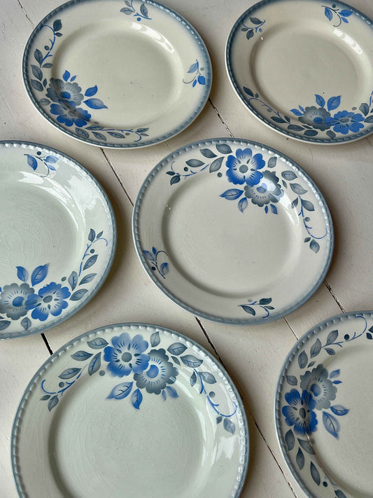 Enkelt håndmalet frokosttallerken med blomstermotiv Ø20