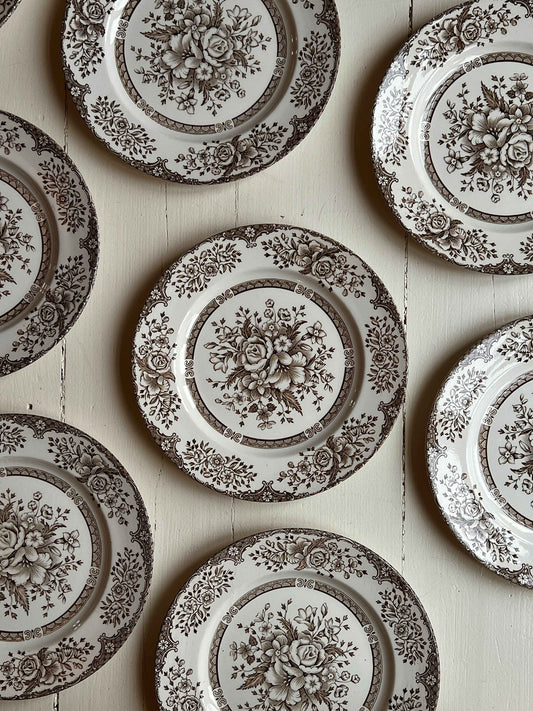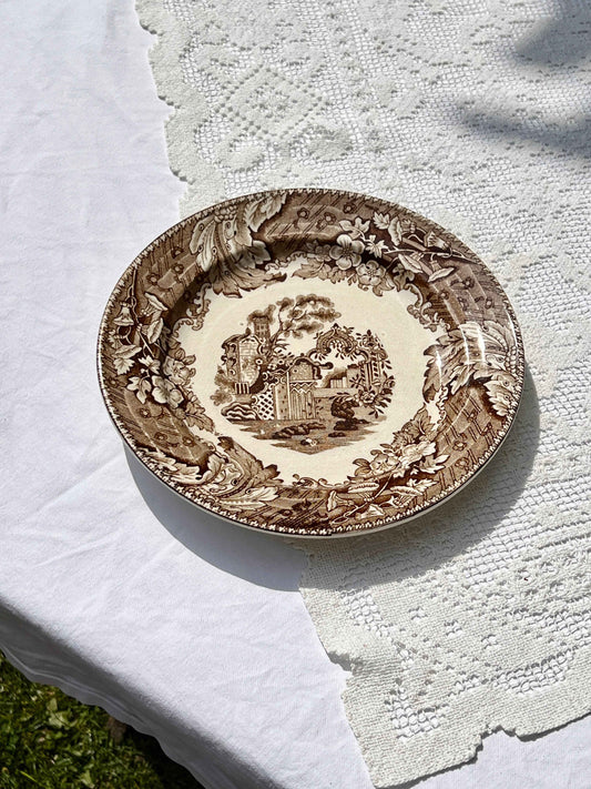 Enkelt stor engelsk tallerken med brunt motiv, Ø24,5