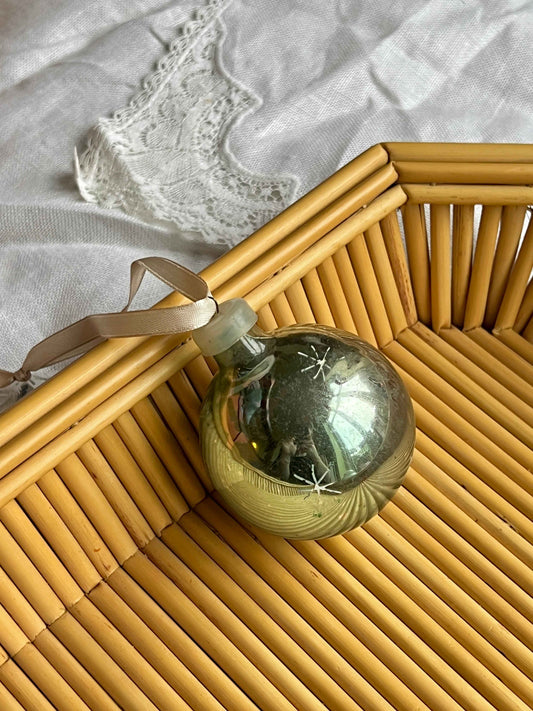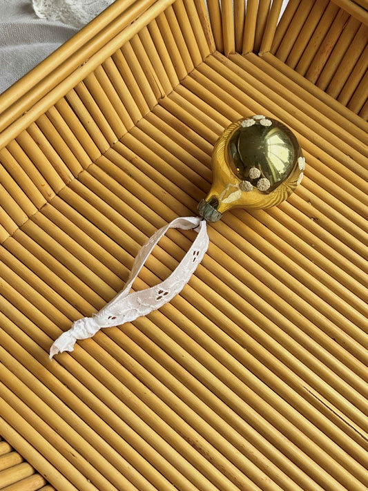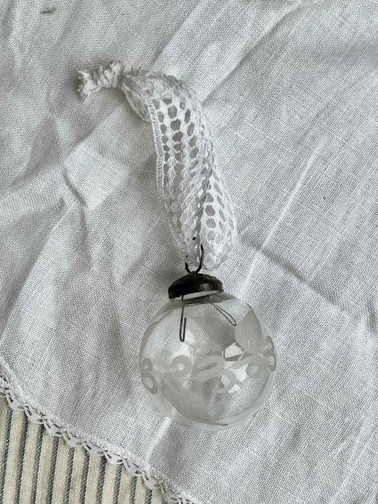 Fransk julekugle i glas med vintage broderi anglaise bånd