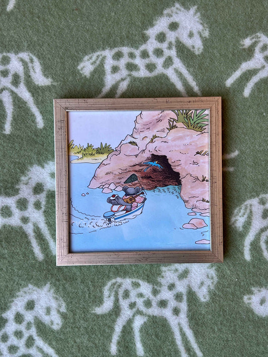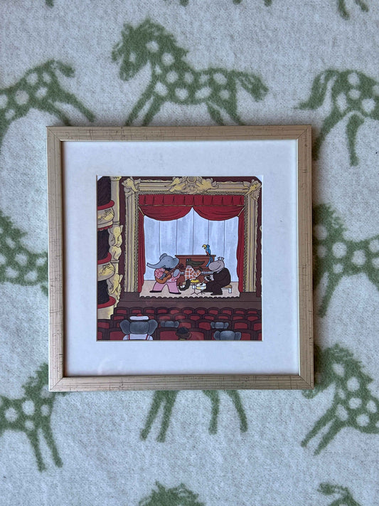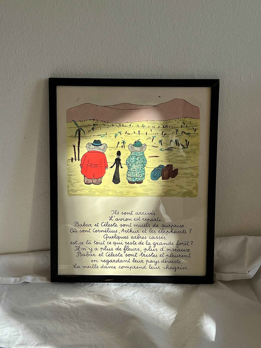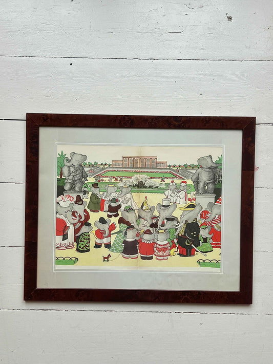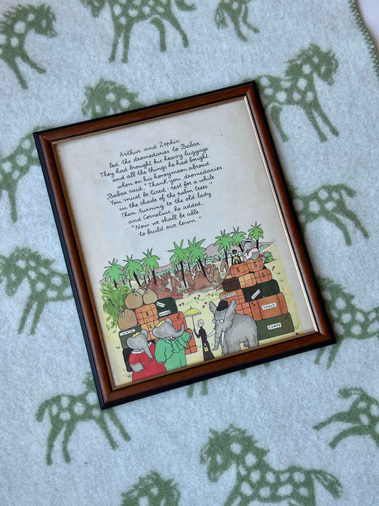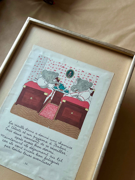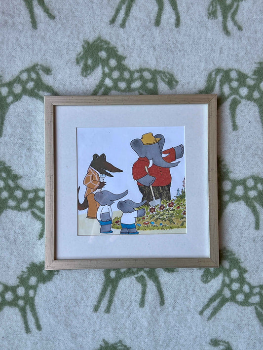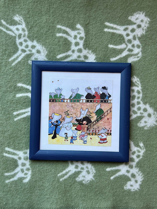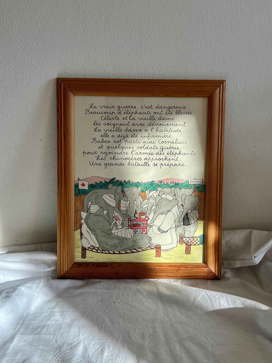Vintage Babar illustrationer til børneværelset fra 1900-tallet i restaurerede vintage trærammer