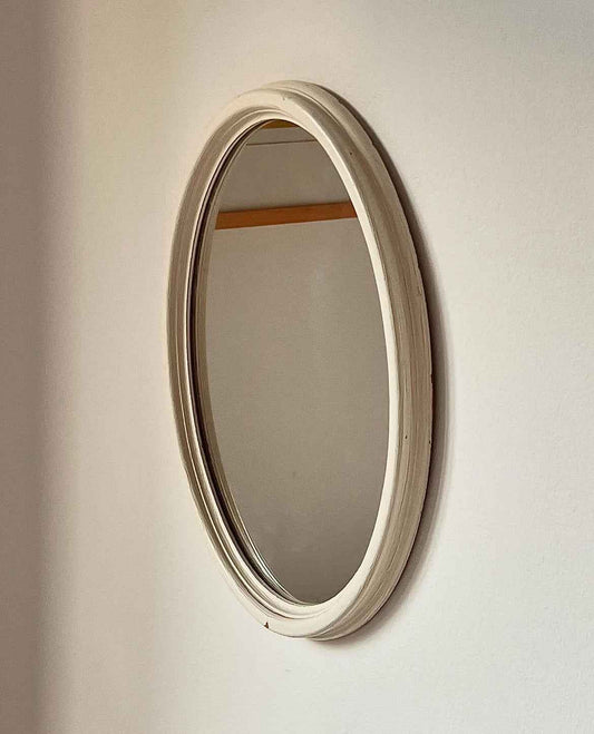 UdsolgtOvalt spejl med råhvid træramme