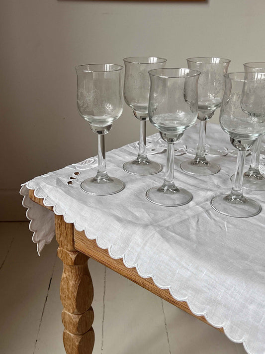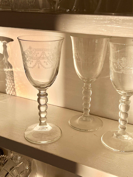 Franske Vinglas med Grøn Stilk – Vintage (17 cm)