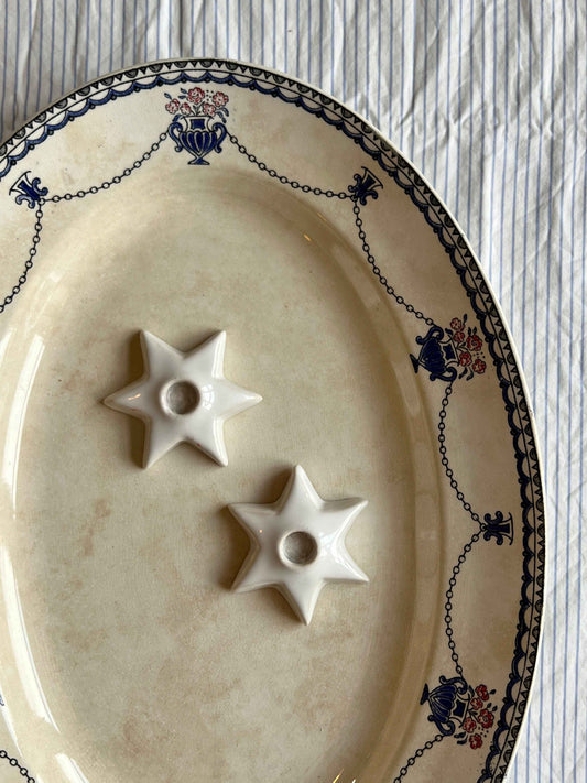Små stjerneformede lysholdere i hvid keramik, sæt a 2