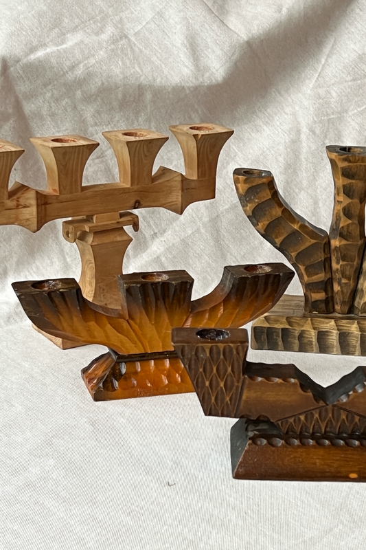 Håndskåret svensk trearmet lysestage i træ