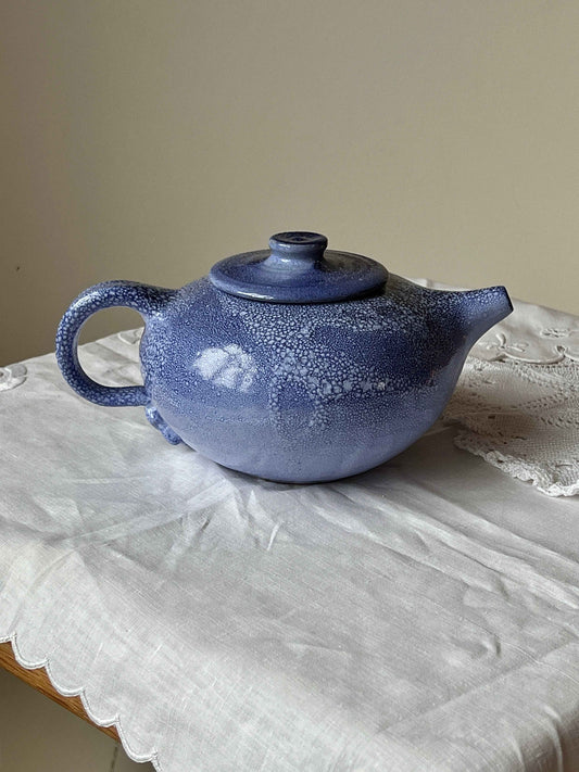 Vintage tekande med blå glasur og organisk form · H12 x L23 x B16 cm