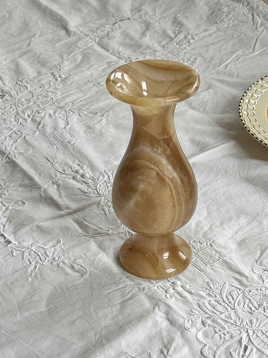 Vintage marmorvase/lystestage · H20 x Ø12 cm · Orange/brun marmormønster