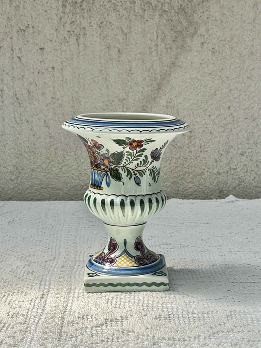 Hollandsk håndmalet porcelænsvase på fod, H18 D14