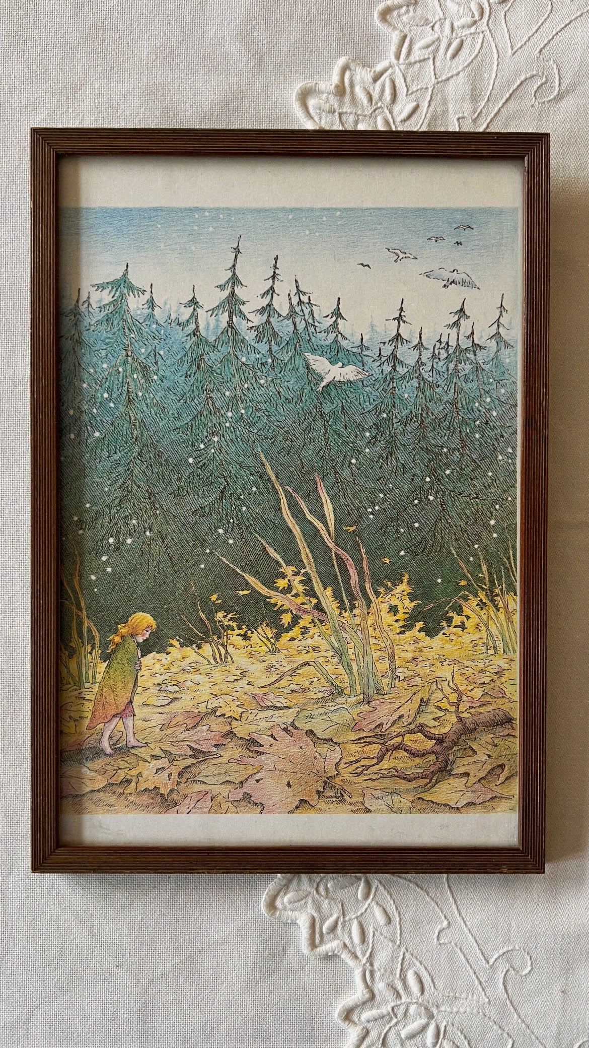 Tommelise illustration i vintage træramme - H28 x B19,5